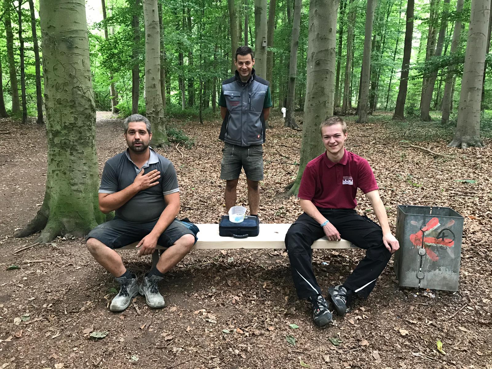 Die Bürgerstiftung Für Korschenbroich montiert weitere neue Holzbänke im Hannenpark.